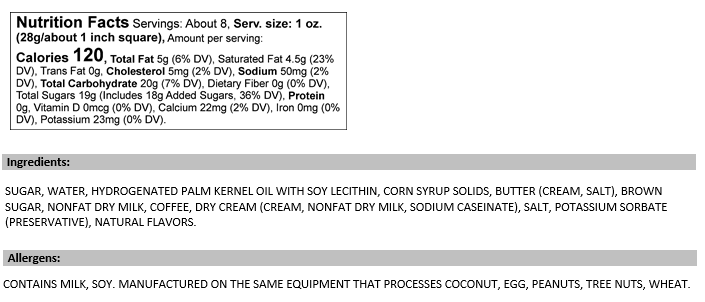 Coffee lovers can’t resist our Cappuccino Fudge! It’s the perfect blend of real coffee swirled into sweet, creamy Vanilla Fudge. Be prepared to pour another cup — or in this case, serve up another piece of fudge — because it’s so delicious!